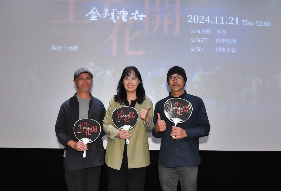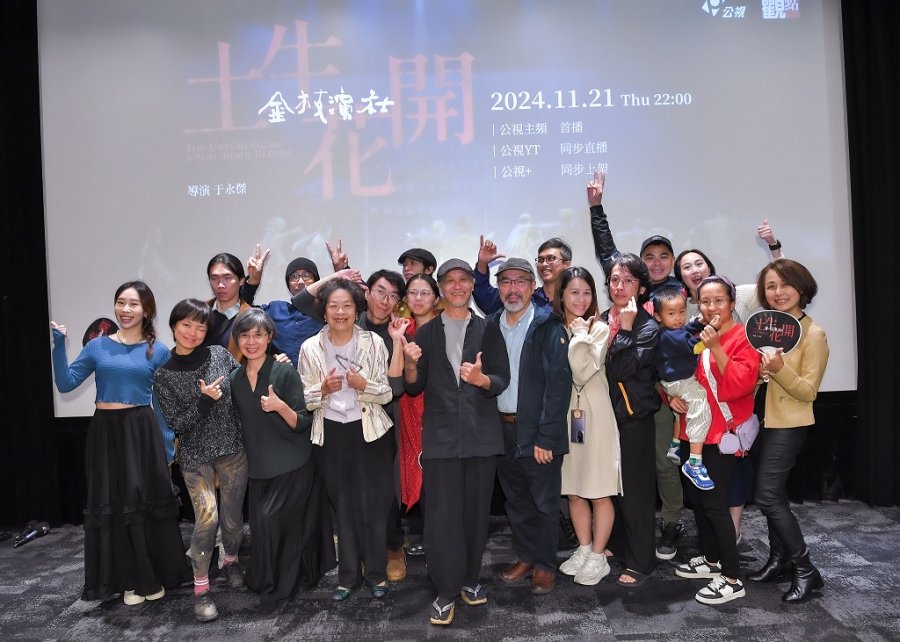 【台北訊】公視「紀錄觀點」將於11月21日周四晚間十點首播《土生花開-金枝演社》,記錄被譽為「台客戲劇第一天團」的金枝演社,台上台下的精采故事,及已故三金影帝吳朋奉當年在劇團生活的珍貴畫面。今(11/20)特舉辦特映會,該片導演于永傑及團隊、金枝演社藝術總監王榮裕率領全體團員出席給予支持。《土生花開-金枝演社》精彩片段: https://youtu.be/JQUWKbZuoWI