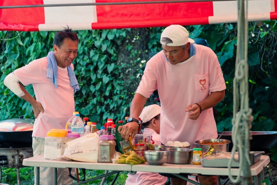 【台北訊】公視實境節目《歐吉桑騎士-阿順阿忠的中年危機》本周四(17日)播出第11集,李銘順和李銘忠兄弟前進彰化,與「台灣心義工團」一起參與善舉,從無到有蓋起房屋。曾合作《做工的人》的李銘順和游安順「雙順」合體,只不過這回他倆聯手負責百人伙食,游安順相當驚訝李銘順廚藝。室內設計出身的李銘忠親手參與建築工,另一名嘉賓莊凱勛佩服說:「我一到場找不到人,因為銘忠哥已經融入工班,俐落施工毫不馬虎,直到他抬頭我才認出他!」