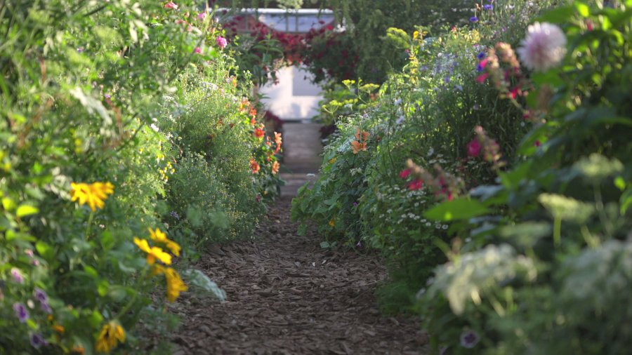 走進香久園,映入眼簾的不是整齊劃一的花海,而是一座會隨風流動的花園。草花高低錯落、色彩柔和,營造出被植物包覆的空間感。片中,貝里尼歌劇《諾瑪》的〈聖潔女神〉旋律,伴隨著草花隨風起伏,彷彿將人帶往歐洲庭園的詩意風景。