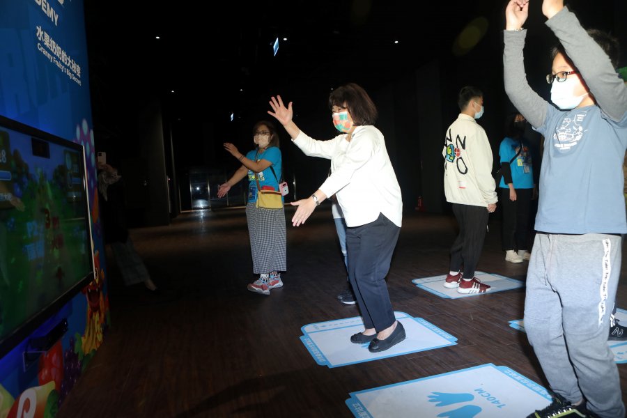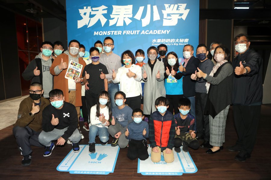 【嘉義訊】水果奶奶IP動畫電影《妖果小學–水果奶奶的大秘密》將於1月21日進軍大銀幕,今(15日)搶先在嘉義in89豪華影城舉辦公益放映,更在影城一樓設置「妖果小學XR科技互動體驗區」,希望將更多感官體驗帶給嘉義地區的大小朋友。嘉義市長黃敏惠也蒞臨現場,與受邀前來的民族國小學童以及水果奶奶、妖怪大偶同樂,在「妖果小學XR科技互動體驗區」玩起體感機台與孩子互動PK時直呼:「哇!玩這個會流汗喔,這個好玩!」