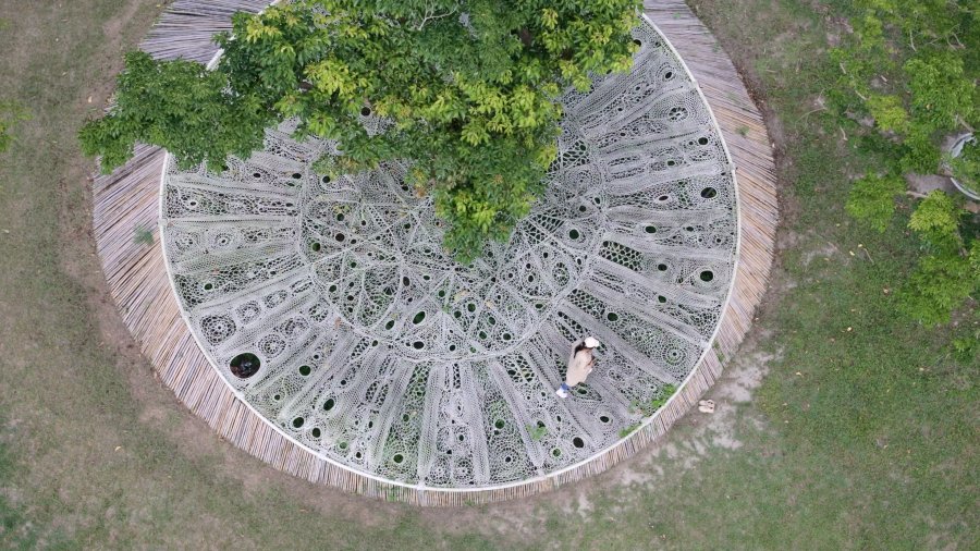 安聖惠為紐西蘭展覽《無中心、無邊界》(without centre, without limits),創作《沒有人是別人》,靈感來自於紐西蘭駐村時、了解當地氣候變遷。作品取材廢棄魚網、繩子、咖啡豆袋,以及線,構築以眼睛為前景、繽紛世界為背景的立體裝置,引導觀者穿梭遠古記憶、或想像與海底或森林對話,啟發對氣候變遷的關注與對話。