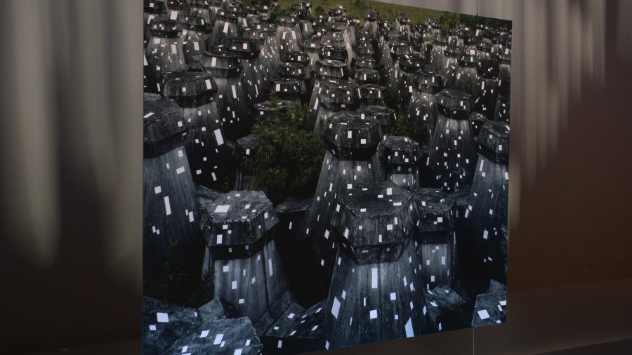 劉文瑄分享:「聽到蘇菜直覺性的形容作品,非常激動!」她還分享創作過程,足足花了一週的時間在消波塊上貼了雙面膠,再以4X5相機拍攝,完全無用影像軟體Photoshop修片。
