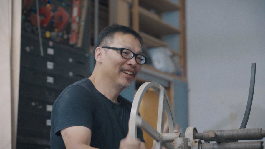 有「藝術界魔術師」之稱的廖建忠,創作靈感來自日常片段,其《表面工程法》系列以精細木作擬仿真實物,改變觀眾感知的慣性。作品《貨車廂(TO-DAY)》以薄木打造貨車廂造型,劉文瑄驚呼「有初戀的感覺!」廖建忠說,靈感來自等紅燈時看到貨車尾訊息,並強調「因為作品是假的,才會讓人思考為何要做這件事」,引發觀眾對真實與虛構的思辨。