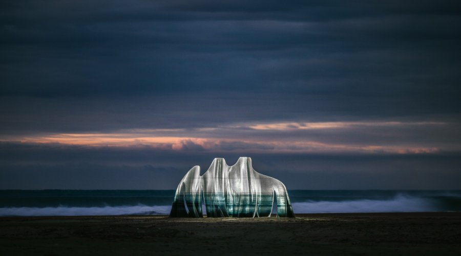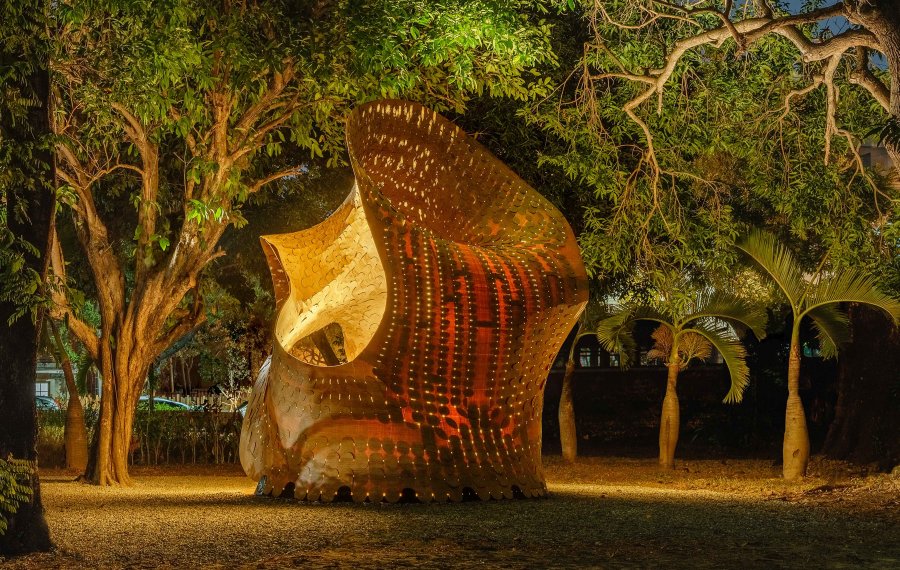 位在高雄市美濃運動中心前的作品《韻水 慢漫》Flowing Rhymes2023是ROSO與趙建銘建築師事務所共同合作完成台灣首座機器人水泥3D列印景觀座椅。ROSO成功挑戰如何讓原本要一、兩天才乾的水泥瞬間凝結使用自行開發的機器手臂水泥3D列印技術展現了機器人3D列印的多向度自由曲度成型的特色以「瀰濃」水的意象為主題打造如自然河水般優美曲線的街道座椅為這片土地帶來獨特的景觀藝術也重塑新的智慧營建施工模式。台灣營建產業近年來面臨缺工、技術斷層嚴重且年輕勞動力缺少的困境ROSO期待藉由營建機器人與AI運算、材料科學等開啟新型態智慧營建的可能性與機會。