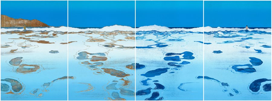 《藝術很有事》製作團隊更以鏡頭仔細端詳李屏宜2023年首次挑戰最大尺幅作品《海波浪》,帶出浪花如綿密細泡般展延,青墨則再現了鏡像天空的蔚藍海水,佇立洋流中的背影投射出創作者的自由心嚮。李屏宜分享:「《海波浪》這件作品其實不是這麼完全的對稱,板子與印出的紙本空間多了不對稱的突破,好像也是下一個新的起點,去探究更多可能性。」