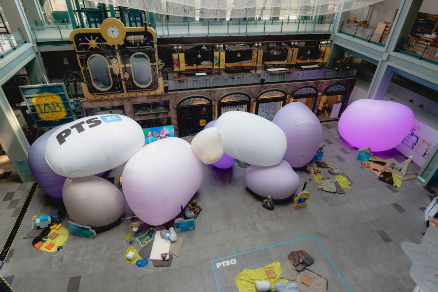「小公視 PTS XS」於8月20日正式開台,這一全新平台旨在為台灣的兒童和青少年提供多元且豐富的影音內容。而作為開台活動的第一步,「小公視的秘密基地」以童年堆石頭遊戲為靈感,透過充氣材質堆疊出大型巨石結構,打造了一個讓孩子們能夠自由探索、充滿驚奇的奇幻空間。這個空間不僅展現了小公視將節目內容從靜態螢幕帶入充滿動感與探索動能的實境體驗,更傳遞了小公視鼓勵孩子們發揮創意、無拘無束地成長的核心理念。在正式開幕前,「小公視的秘密基地」就已經吸引了許多小朋友搶先進入闖關,充滿視覺衝擊性的巨石陣佈置,以及滿滿互動性與趣味性的關卡,讓小朋友們流連忘返,歡笑聲不斷。