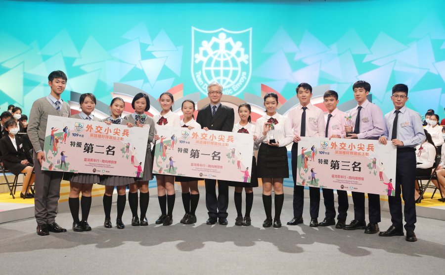 【台北訊】外交部與教育部共同主辦的「109年外交小尖兵-英語種籽隊選拔活動」週六(12/12)於公共電視舉行決賽,由蔣偉文擔任主持人。彰化縣私立精誠高級中學拿下特優第一名,桃園市立武陵高級中學、台南市德光高級中學分別獲得特優第二、三名,前三名隊伍獲頒獎盃及獎牌。第四、五名則為臺中市私立曉明女子高級中學、台北市私立靜心高級中學,獲得獎盃及兩萬五千元獎學金。