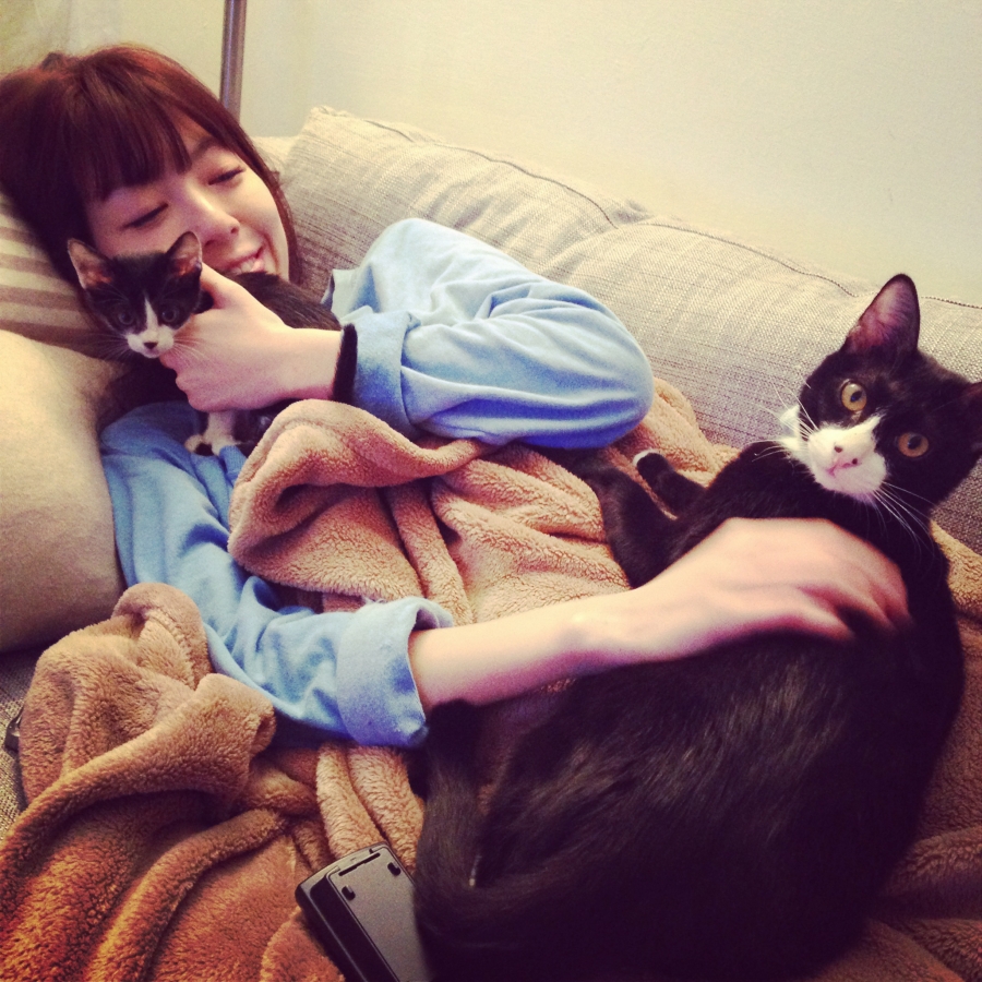 其實,愛看電影的她,小時候因為被鬼片洗腦,認為貓是鬼的好朋友,總是一前一後出場,所以,十分怕貓;直到長大後室友養的貓很可愛,才讓她逐漸改觀,而開始領養大主子「紅豆詞」後,接連認養了「紅大詞」、「紅小布」。