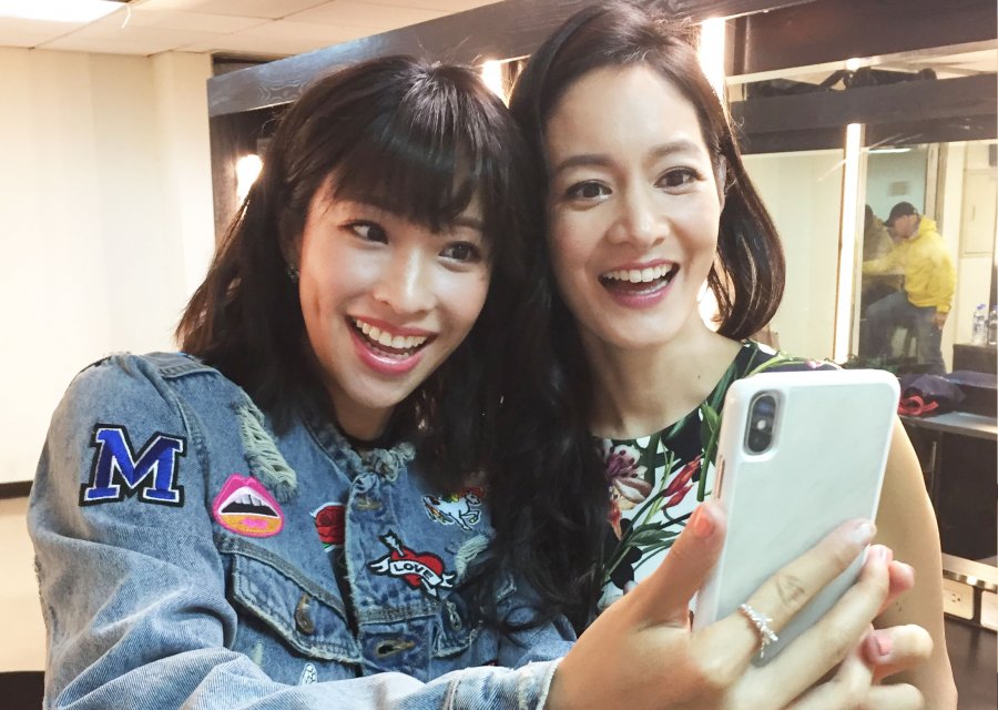 袁詠琳趁錄影空檔,與同是就讀德州百利(Bellaire)高中的學姐Janet相認,兩人開心拍上合照,還一起與大霈亂入下一場暖場直播,一下子張大嘴,一張子弄豬鼻子,笑翻網友!